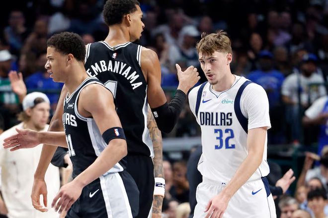 最后说一个现象。联盟双塔在变多。昨天的火箭雷霆不用说,今天看到马刺同时摆出文班+科内特,立刻觉得亚当斯+申京的内线组合有点矮了。独行侠、爵士的首发高度跟火箭比都不逊色——昨天还说,“这没见过,真没见过”,第二天就又见到了。