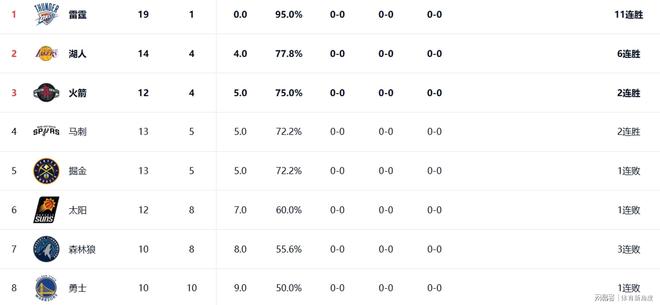 西部排名又变了:湖人高歌猛进,火箭躺升排名,3队排名互换