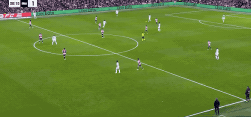 面对着毕尔巴鄂的高位逼抢,皇马的战术相当奏效,那就是找准时机,送出准确的长传。